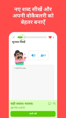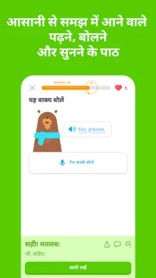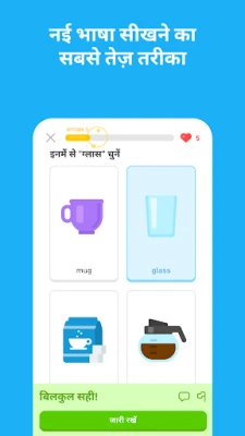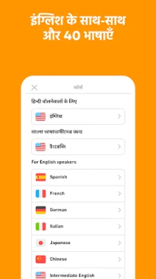 क्या आप नई भाषा सीखने का सपना देखते हैं? चाहे यात्रा के रोमांच के लिए, अपने करियर को आगे बढ़ाने के लिए, या बस अपने मस्तिष्क को नई चुनौतियों से जोड़ने के लिए, डुओलिंगो आपकी हर भाषाई महत्वाकांक्षा को पूरा करता है। दुनिया भर में करोड़ों लोग डुओलिंगो को अपनी पसंदीदा भाषा सीखने का साथी मानते हैं, क्योंकि इसे भाषा के विशेषज्ञों द्वारा सावधानीपूर्वक तैयार किया गया है। यहाँ आप स्पैनिश, फ़्रेंच, जैपेनीज़, कोरियन, जर्मन, इंग्लिश और कई अन्य भाषाओं में वास्तविक जीवन की बातचीत का अभ्यास कर सकते हैं, जो आपकी रोज़मर्रा की ज़रूरतों के लिए एकदम सही है।