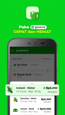 क्या आप शहर में तेज़ी से सफ़र करना चाहते हैं? Gojek राइड आपको तुरंत मंज़िल तक पहुँचा सकती है, या आप Gojek कार के साथ अतिरिक्त आराम का अनुभव कर सकते हैं। जब आपकी भूख सताए, तो Gojek फूड पर अनगिनत रेस्तरां और व्यंजनों में से चुनें, और अपने पसंदीदा पकवानों का मज़ा लें। यदि आपको कुछ भेजना हो या प्राप्त करना हो, तो Gojek सेंड आपकी चीज़ों को सुरक्षित और समय पर पहुँचाने की गारंटी देता है, साथ ही बीमा सुरक्षा भी प्रदान करता है।