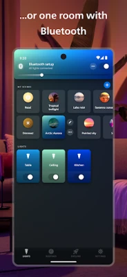 Philips Hue ऐप आपके स्मार्ट रोशनी के अनुभव को नई ऊंचाइयों पर ले जाता है। अपने घर की रोशनी को अपनी उंगलियों पर व्यवस्थित और नियंत्रित करें, चाहे आप कहीं भी हों। लिविंग रूम, डाइनिंग एरिया, या पूरे निचली मंजिल जैसे कमरों और ज़ोन में अपनी रोशनी को सहजता से समूहित करें, बिल्कुल आपके घर के लेआउट की तरह। पेशेवर प्रकाश डिजाइनरों द्वारा तैयार की गई Philips Hue सीन गैलरी के साथ किसी भी अवसर के लिए तुरंत सही माहौल बनाएं। अपनी पसंदीदा तस्वीरों या रंगों से प्रेरित होकर आप अपने खुद के अनूठे दृश्य भी बना सकते हैं, हर पल को खास बनाने के लिए।
